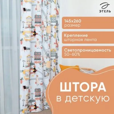 Главная » Все для дома Штора Просмотров 20 Штора Этель "Fantasy town", 145х260 см, 100% хлопок. Этель