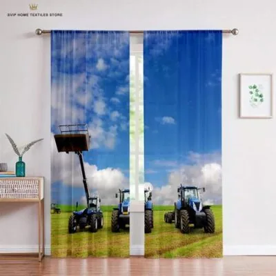 Шторы для детей с изображением сельскохозяйственных машин и тракторов, декор детской комнаты, марлевые шторы, 2 шт., гостиная, спальня, декор кабинета W150X250H(CM)X2PCSRod pocket