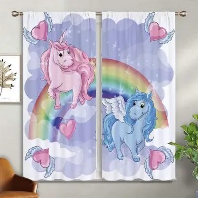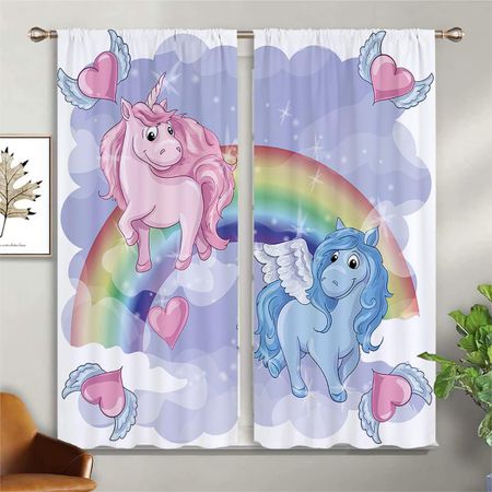 Шторы для детской комнаты с рисунком единорога и лошади, радужным принтом, шторы для гостиной, балкона, кухни, украшения, шторы для дома W50xH140(CM)x2PCSGrommet Top