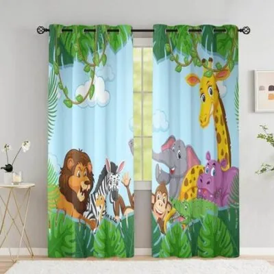 Шторы для детской комнаты, занавески со слоном, жирафом, львом, животными, для гостиной, спальни, перегородки, высокая затененность (70 %-90 %)2 панели W53.5 X H114cm X 2