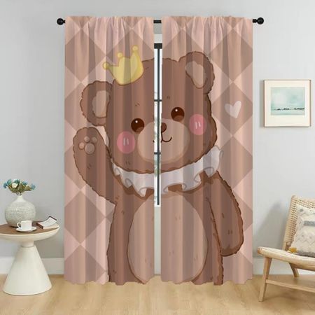 Шторы для кухни, шторы для детской комнаты с изображением медведя для спальни, затемняющие шторы для комнаты, 2-панельные шторы, перегородка для украшения Хэллоуина W50xH70cmx2pcs