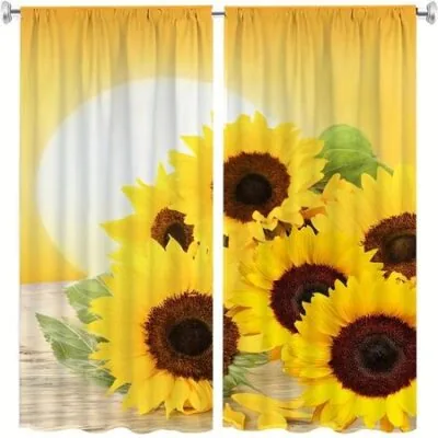 Шторы для кухни в деревенском стиле с подсолнухами — стиль винтажного фермерского дома, 2 панели, короткие шторы для столовой в стиле кафе, ботаническое искусство W100X240H(cm)x2PcsHook