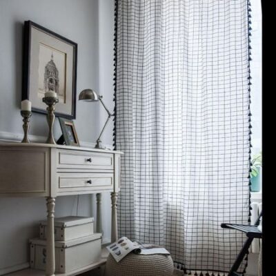 Шторы из белого и черного хлопка с кисточками из высококачественного льна с затемнением, полузатеняющие, тканые, для эркера, для дома, гостиной, крючки 150x160cmGrommets Top