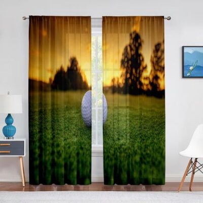 Шторы из прозрачной вуали с тематикой гольфа, ламбрекен и мяч на подставке для спальни, гостиной, кухни, тюлевая штора для окна 1 PCS W100XH250cm&Rod Pocket