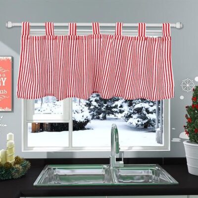 Шторы Кухонные шторы Ткань Маленькие шторы Рождественские красные комбинезоны 132*46cm красный