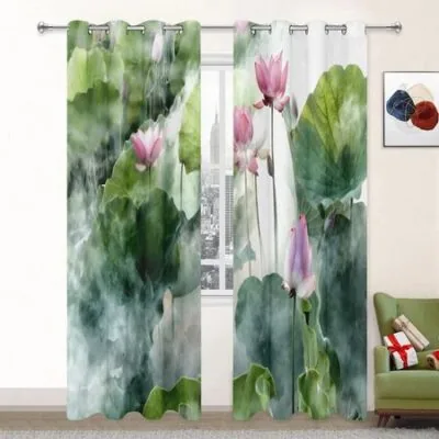 Шторы Lotus для гостиной, плотные шторы для окон в стиле ландшафтного дизайна для спальни, эстетический декор комнаты, шторы с высоким затенением W55 X H120cm X 2Grommet Top