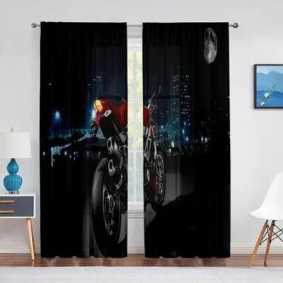Шторы на окна мотоцикла 3D Dirt Motocross Bike силуэты гонщиков, пересекающих дорогу во время гонки по мотокроссу Полузатемняющие шторы 2x50W100H(CM)hook