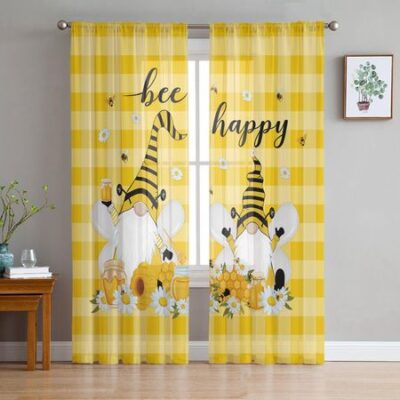 Шторы-прозрачные занавески в клетку Bee Dwarf Daisy Honey Yellow для гостиной, современные шторы из вуали, шторы из тюля для спальни, занавески для окон W135 x H114cm