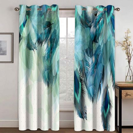 Шторы с 3D цифровым принтом и перьями для гостиной, солнцезащитный козырек, термоизолированная обработка окон, роскошные шторы, панели, декор 100W160H(CM)40x63in&Hook