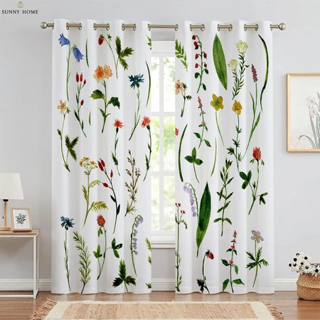 Шторы с цветочным принтом Пасторальный стиль Шторы для украшения окон Подходят для спальни гостиной кабинета Шторы Украшение дома W75xH166(CM)x2PCSRod pocket