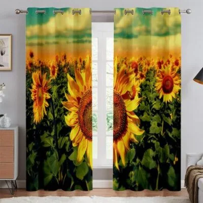 Шторы с цветочным принтом «Подсолнухи», 100% полиэстер, карман на штанге, для кухни, гостиной, спальни, декоративные, 2 шт. W50xH130(CM)x2PCSGrommet Top