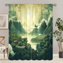 Шторы с дикими цветами и луной, Бохо Винтаж Фазы луны Ботанические Середина века Лунный свет Растения Эстетика Весенний цветок Блэкаут Окно 53x116CM-2PC