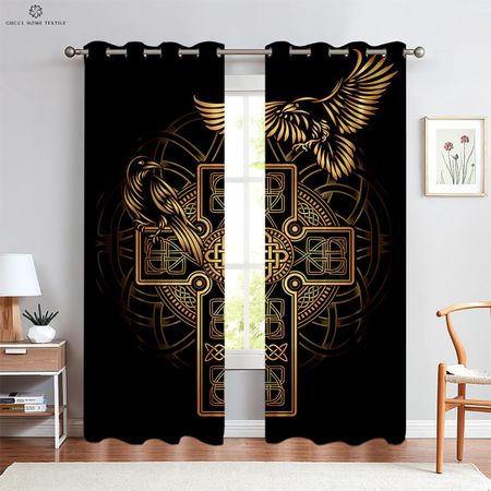 Шторы с геометрическим рисунком рунического щита и созвездия, черные шторы, для гостиной, на открытом воздухе, для спальни, кухни, для окна, 2 шт. W50xH130(CM)x2PCSGrommet Top
