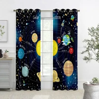 Шторы с принтом «Мультяшный астронавт», шторы с высокой светонепроницаемостью и теплоизоляцией, декоративные шторы для спальни и гостиной W100xH130(CM) folio&Rod pocket