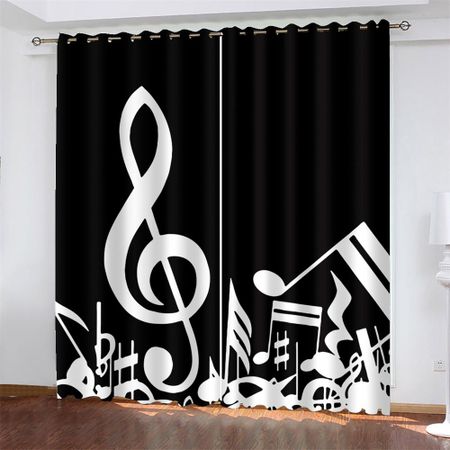 Шторы с принтом музыкальных символов для гостиной, спальни, светопропускаемость 90 граммов, полиэфирное волокно, ткань для штор, две панели W50xH130(CM)x2pcsGrommet Top темно-синий