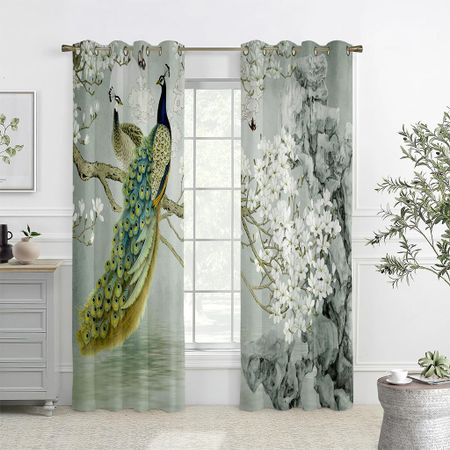 Шторы с принтом павлина в стиле ретро, полузатемняющие декоративные шторы для гостиной, спальни, кухни, ванной комнаты и домашнего декора W50xH140(CM)x2PCSRod pocket