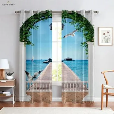 Шторы с принтом в виде моря за окном, узор морского пейзажа для спальни, гостиной, балкона, шторы можно изготовить по индивидуальному заказу W50xH140(CM)x2PCSGrommet Top