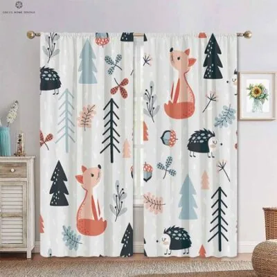 Шторы с рисунком животных из мультфильма «Радужный лес», декоративные шторы для детской комнаты, легко стирать и ухаживать, спальня, гостиная W50xH130(CM)x2PCSGrommet Top