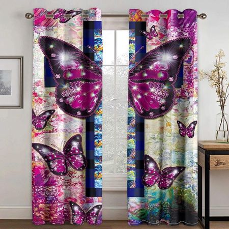 Шторы с тропическими растениями, цветами и бабочками для гостиной, спальни, черные занавески для двойной спальни, корейский декор комнаты W50xH130(CM)x2PCS-Rod pocket