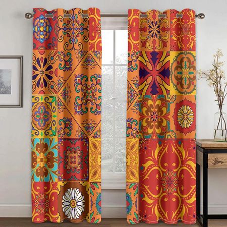 Шторы в стиле бохо в стиле ретро для спальни, тонкие солнцезащитные шторы из полиэстера, декоративные, с принтом в стиле бохо, готовые W100 X H240(CM)X2Grommet Top