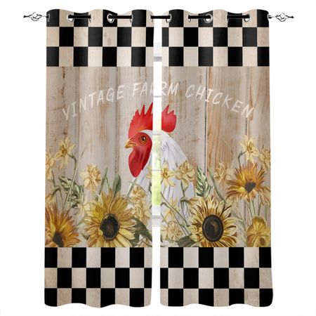 Шторы-занавески в клетку с подсолнухом и рисунком дерева в стиле ретро с изображением фермерского петуха для кухни, спальни, детской комнаты, оконные шторы для гостиной W135 x H60cm