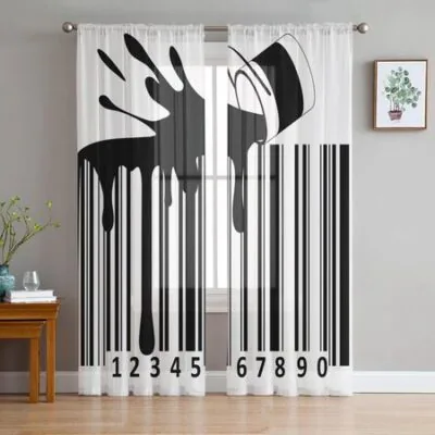 Главная » Все для дома Штрих-код узор пролитая краска ведро тюль прозрачные оконные шторы для гостиной кухни детской спальни вуаль подвесная занавеска W135 x H114cm Просмотров 9 Versatile Home Furnishing