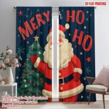 2 шт., Шторы с 2D-печатью, с рисунком Санта-Клауса и заснеженной деревни, тканые из полиэстера (без удилища) Внутренние украшения Ldeal для 52.50×116.00 CM 2pcs