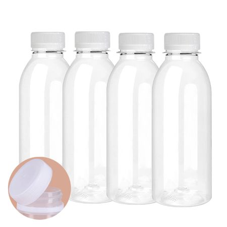SHZMJL 500 мл Бутылка для напитков с пластиковой крышкой для сока, прозрачная пустая молочная многоразовая прозрачная тара для напитков, молока и других напитков, прозрачная ПЭТ-крышка, бутылки, 4 шт. в упаковке
