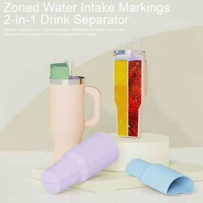 Силиконовый вкладыш для стакана 2-в-1 Разделитель для напитков Съемный многоразовый разделитель для стакана Вставки для держателя стакана для пищевых продуктов для сока, кофе, коктейлей темно-серого