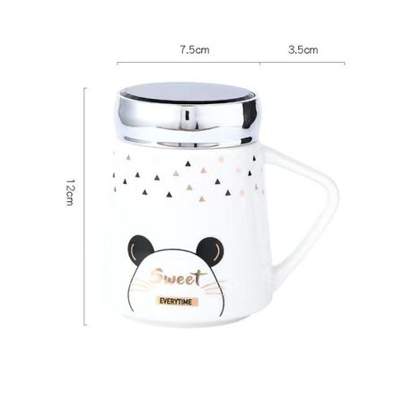 Симпатичная кружка с рисунком из мультфильма, зеркальная крышка, керамическая чашка для воды, кофейная чашка, чашка для молока, кружка, чашка послеобеденного чая белый