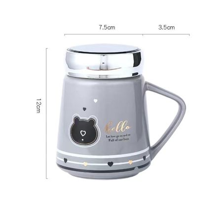 Симпатичная кружка с рисунком из мультфильма, зеркальная крышка, керамическая чашка для воды, кофейная чашка, чашка для молока, кружка, чашка послеобеденного чая белый