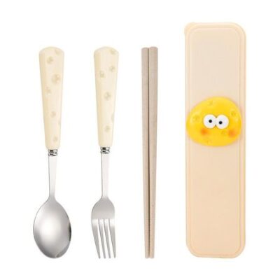 Симпатичная ложка для сыра из нержавеющей стали, вилка, палочки для еды из пшеницы, набор из трех предметов, студенческий детский портативный набор коробок для хранения посуды 4PCS