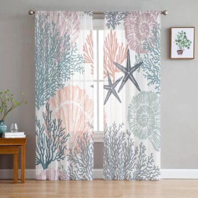 Главная » Все для дома Синие морские коралловые ракушки, морские звезды, прозрачные шторы для гостиной, украшения оконных штор, кухонных тюлевых вуалей, штор из органзы W135 x H115cm x1Grommet Top Просмотров 1 Yiran Furniture