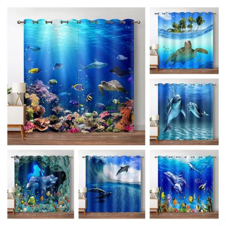 Главная » Все для дома Синие шторы с океаном для гостиной, плотные шторы с морской рыбой, черепахой для спальни, эстетичные украшения для дома, 2 панели W53.5 X H114cm X 2 Просмотров 10 Jingyue-Apparel