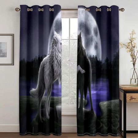 Синий волк животные розовый леопард два драпировки плотные оконные шторы для гостиной спальня декор тигр узор высокая затемняющая драпировка W55 X H120cm X 2Grommet Top