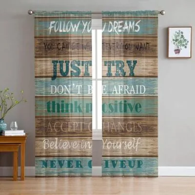 Следуй за своей мечтой Винтажная старая деревянная доска Прозрачные шторы для гостиной Тюль для окон Вуаль Пряжа Короткие шторы для спальни W135 x H114cm