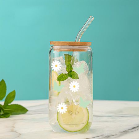 Главная » Все для дома Small Daisy Flowers Clear Drinking Glass Can With Bamboo Lid Straw Juice Coffee Milk Cup For Hot/Cold Drinks Drinkware For Gifts 500ml Просмотров 1 Versatile Home Furnishing