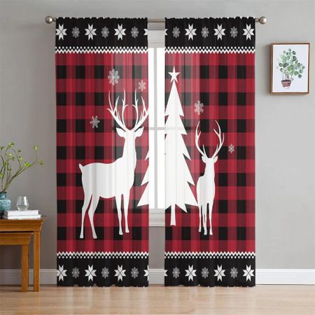 Снежно-красные блестящие тюлевые шторы в виде рождественской елки для украшения гостиной, спальни, прозрачные шторы для кухни, оконного оформления W65X60H(cm)X2PcsGrommet Top