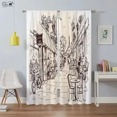 Современные Простые Городские Архитектурные 3D-принтованные Шторы Вид на Улицу Вид на Реку Гостиная Окна от Пола до Потолка Шторы на Заказ W50xH130(CM)x2PCSRod pocket