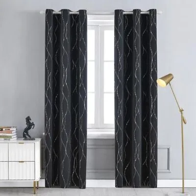 Современные шторы для гостиной Высокая затемняющая штора 90% для спальни с затемнением Толстые жалюзи Портьеры Дверь 1 шт. W132cm x H200cm 1PcRings чёрный