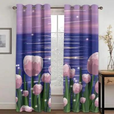 Современные шторы с тюльпанами для гостиной, жалюзи, окон, балкона, дверного проема, занавески для зала, элегантные длинные шторы, День матери 50W160H(CM)x2PanelGrommet Top