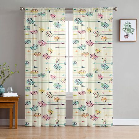 Главная » Все для дома Современные тюлевые шторы со стрелками и перьями для гостиной, спальни, дома, кухни, окна, прозрачные шторы 135W x 114H(cm) Просмотров 14 A Family Of Home Textiles