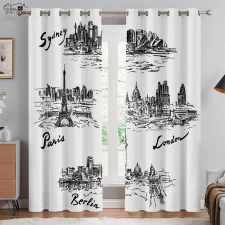 Современный минималистский городской строительный 3D-принт шторы вид на улицу ночной вид неоновые расписанные вручную шторы для гостиной спальни индивидуальные шторы W50xH130(CM)x2PCSRod pocket