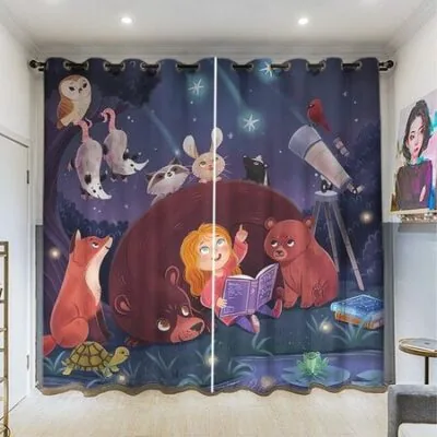 Спальня Кухонная занавеска Мультяшные Милые Животные Вечеринка в Джунглях Детские Оконные Занавески Драпировки для Гостиной Декоративные Элементы 2 Панели W60H60(CM)x2PCSGrommet Top