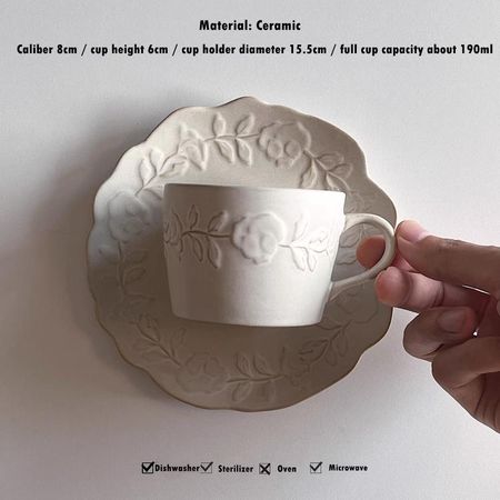 Главная » Все для дома Средневековая тисненая кофейная чашка и блюдце, европейская керамическая чашка для чая с цветком и латте 220ml белый Просмотров 1 UC-artaesthetics