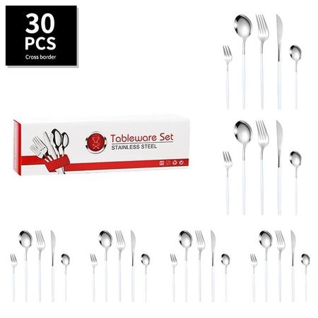 Stainless Steel Knife Fork and Spoon Tableware Set 30 Pieces A Set of Exquisite Silver and Gold Tableware Cake Fruit Fork Fork Fork Spoon Tableware 30pcs серебряный