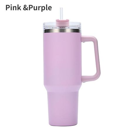 Стакан 40 унций с ручкой и крышкой с трубочкой, изолированная многоразовая бутылка для воды из нержавеющей стали, чашка для холодного кофе, кружка для путешествий для горячих и холодных напитков розовый/фиолетовый