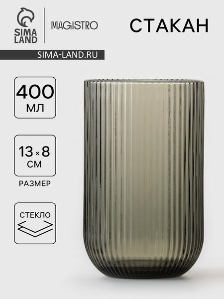 Посуда из стекла Magistro серии «Грани» изготовлена из качественного силикатного стекла. Прочное стекло и красивый рельеф делают эту посуду не только элегантной, но и функциональной. Изделия прекрасно оформят праздничный стол и создадут приятную атмосферу за романтическим ужином.Стакан стеклянный Magistro «Грани» — идеальное сочетание стиля и функциональности. Объём 400 мл и размер 8×13 см делают его удобным для использования в повседневной жизни. Роскошный цвет придаёт стакану особую элегантность и делает его ярким акцентом на кухне или в баре. Изготовлен из прочного стекла, стакан Magistro «Грани» легко моется и устойчив к царапинам. Этот стакан станет незаменимым помощником в вашем доме и добавит уюта и тепла вашим семейным вечерам.Преимущества:Экологичность: стекло не выделяет вредных веществ при нагревании и контакте с продуктами, безопасно для здоровья.Устойчивость к кислотам и щелочам: стекло не вступает в реакцию с продуктами и моющими средствами, обеспечивая долгий срок службы посуды.Прозрачность: стекло позволяет видеть содержимое посуды, облегчая контроль за процессом приготовления пищи.Эстетичный внешний вид: стеклянная посуда выглядит стильно и современно, может стать украшением любой кухни.Неприхотливость в хранении: стекло не впитывает запахи и не окрашивается, поэтому посуда долго сохраняет свой первоначальный вид.Химическая нейтральность: стекло не взаимодействует с продуктами, сохраняя их вкусовые качества и аромат.Долговечность: при правильном уходе стеклянная посуда может прослужить долгие годы.