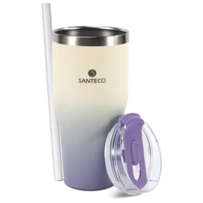 Стакан SANTECO ESCAPE 590 мл с крышкой и трубочкой, большой емкости, изолированный, стильный, из нержавеющей стали, с вакуумной изоляцией, без BPA, легкий, с широким горлом фиолетовый
