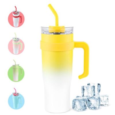 Стакан-соломинка для питья 1250 мл бутылка для воды симпатичная кружка для питья из нержавеющей стали бутылка для воды с широким горлом и ручкой вакуумная изоляция теплоизоляция жёлтый